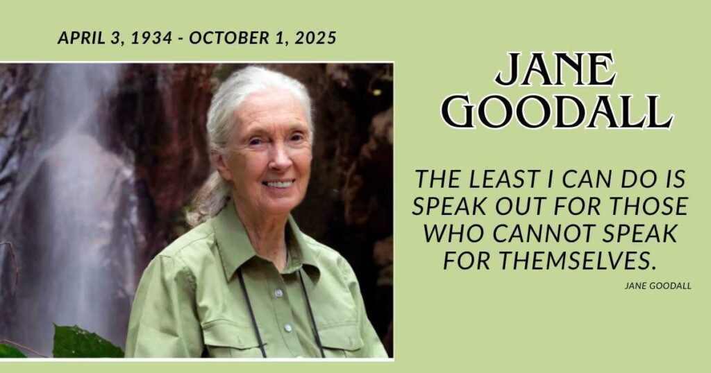 Jane Goodall died as one of the most famous scientists of the 20th and 21st centuries, known for her amazing work with chimpanzees and her efforts to save the planet. On October 1, 2025, Jane Goodall died at the age of 91, leaving behind a legacy that will never be forgotten. She spent her life studying animals, helping people understand the importance of protecting wildlife, and inspiring young people to take action for the environment. Her research and ideas changed the way we view animals and our relationship with the natural world.
